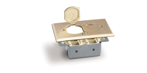 To install you must use a 2" x 3" box with a 3 1/2" depth (not supplied). The box may be attached directly to a sub floor or routed into finished floor. Brass screws are included to attach box to plate.
