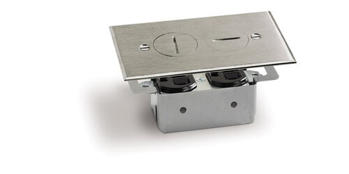 To install you must use a 2" x 3" box with a 3 1/2" depth (not supplied). The box may be attached directly to a sub floor or routed into finished floor. Installation screws are included to attach the box to the plate.
