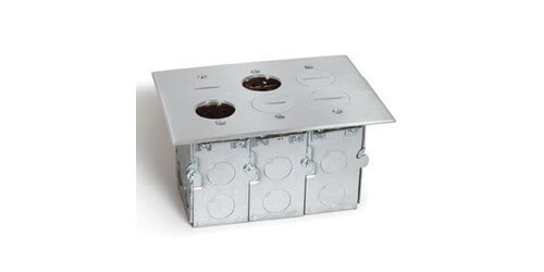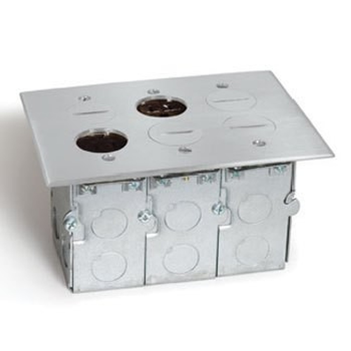 To install use the included back box, there are sixteen 3/4" conduit knockouts to bring your wire into. The box may be attached directly to a sub floor or routed into finished floor. Screws are included to attach the box to the plate.