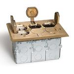 The Lew Electric SWB-6-A is a rectangular floor box that holds (6) 15A tamper resistant power outlets, the top aluminum plate features six screw plugs. The box meets NEMA WD1-1983 heavy duty requirement for display receptacles, the box and outlets are UL listed. The box features a water tight assembly and includes a neoprene gasket. The box is adjustable and can accommodate any thickness floor up to 3/4".