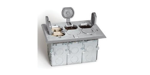 To install use the included back box, there are sixteen 3/4" conduit knockouts to bring your wire into. The box may be attached directly to a sub floor or routed into finished floor. Screws are included to attach the box to the plate.