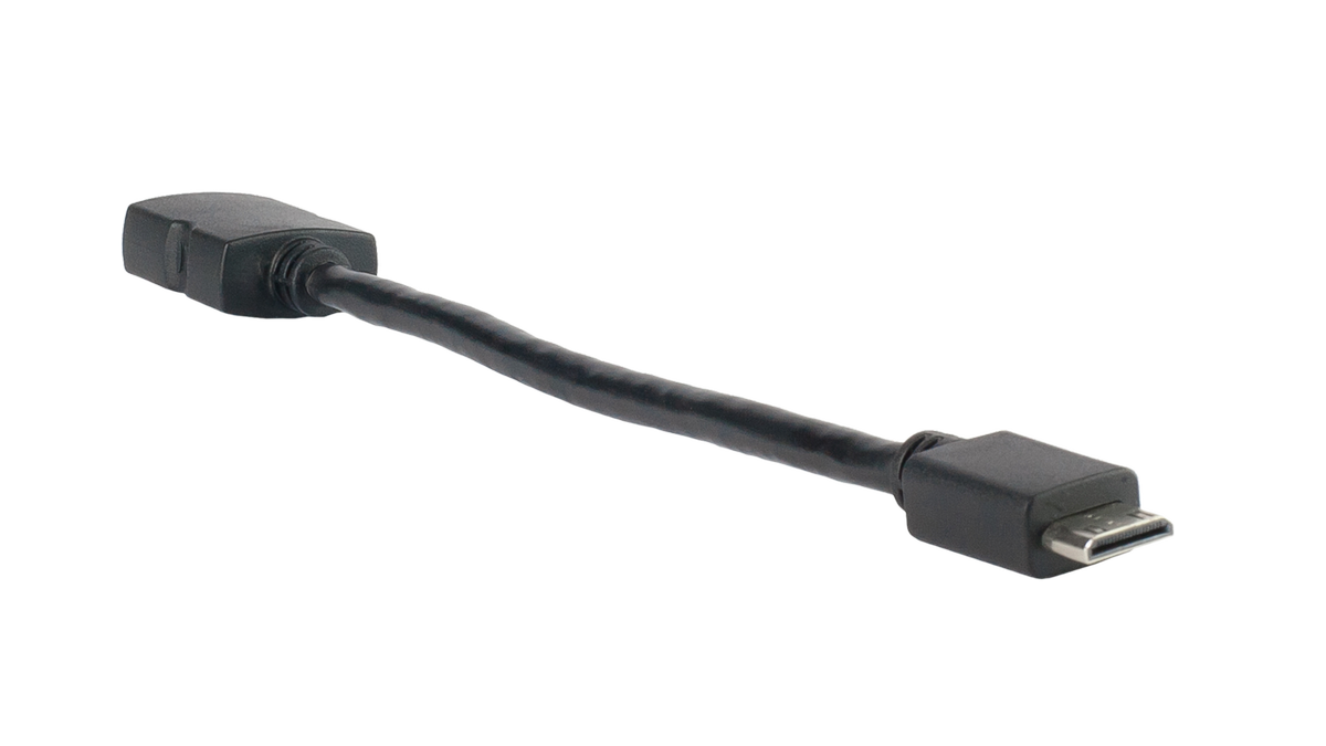 The Liberty AR-MCHM-HDF is a Mini HDMI C male to HDMI female 5.5" adapter cable, it can be used as a standalone adapter or with the Liberty DL-CL ring. The adapter has a loop hole on the unit that allows it to be attached to the DL-CL ring.