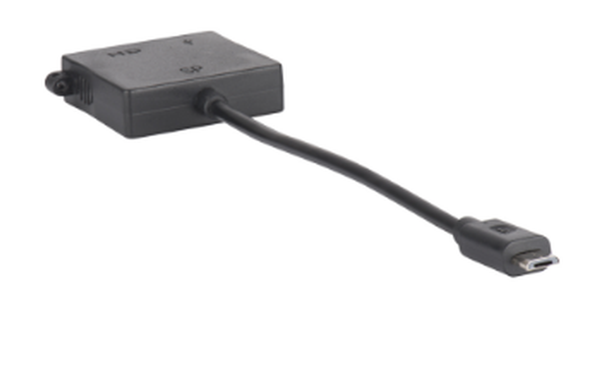 The AR-SLPT-HDF from Liberty AV is a 6" Slimport compatible micro USB to HDMI adapter cable. This adapter cable uses a USB micro male to full sized "A" Female dongle and supports slimport protocol (MyDP/Mobile Displayport) which makes it compatible with such items like the LG G3 for example. This adapter cable has a molded eyelet for security cable attachment, for example with Liberty AV's DL-CL security clamp and ring for adapters, which helps keep your adapters safe and secure on one convenient ring. This device functions as a standalone dongle, making it ideal for adaption of mobile content device to and HDMI infrastructure.