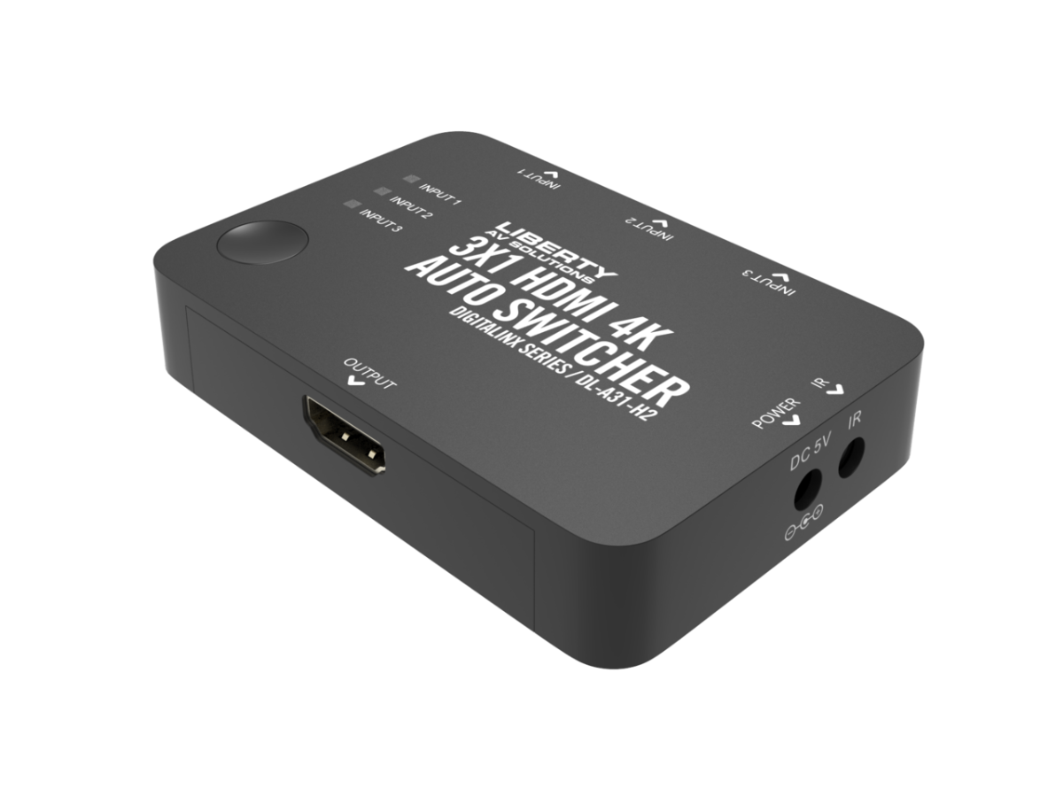 The DigitaLinx DL-A31-H2 is a compact, ultra-slim HDMI auto switcher offering three enhanced 4K HDMI ports with one output. Ideal for gamers, home theatre enthusiasts, or commercial deployments where simplicity is key. Connectivity includes three HDMI inputs, one HDMI output, IR port, power port and Switch button with integrated LED indicators.