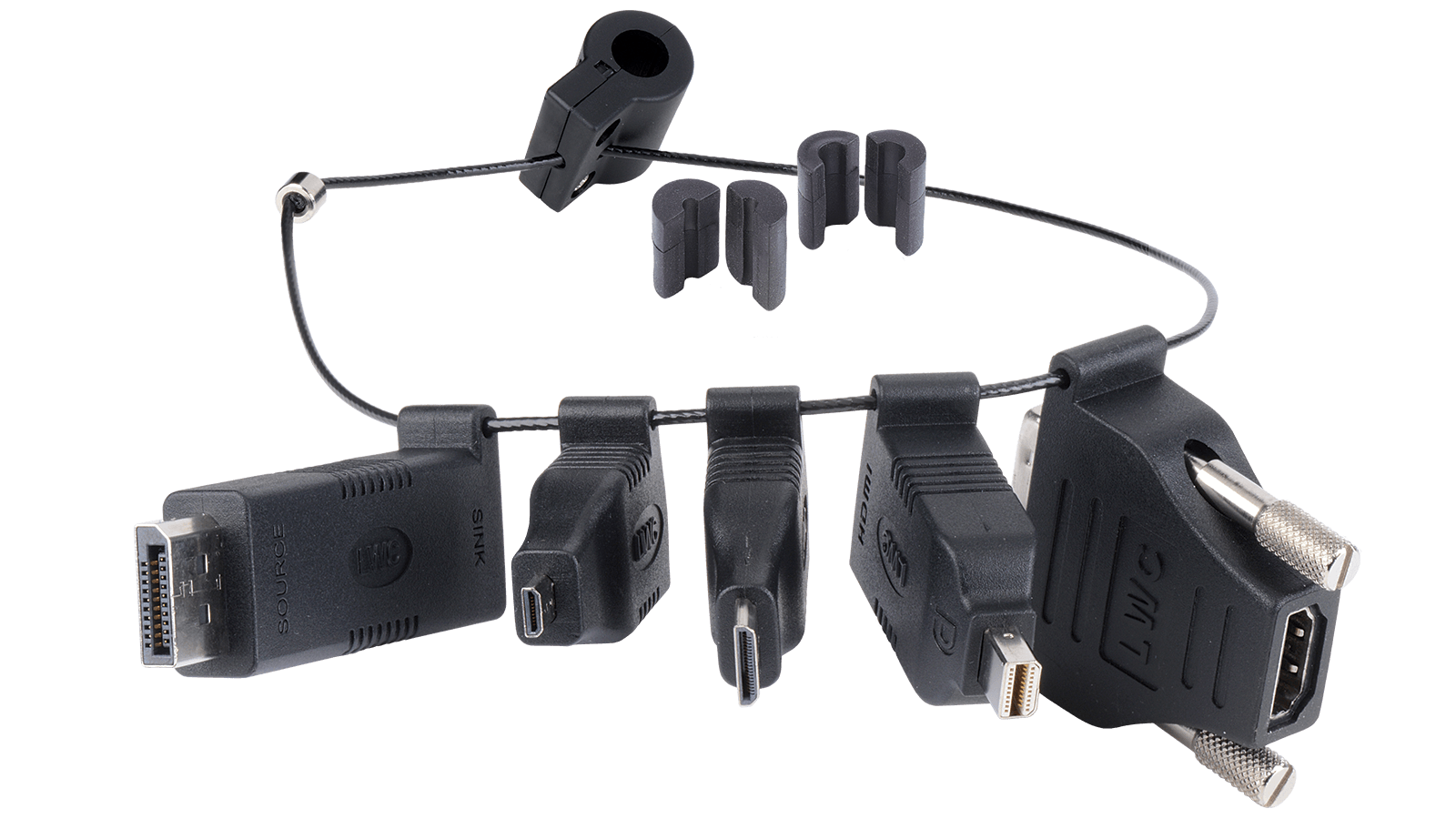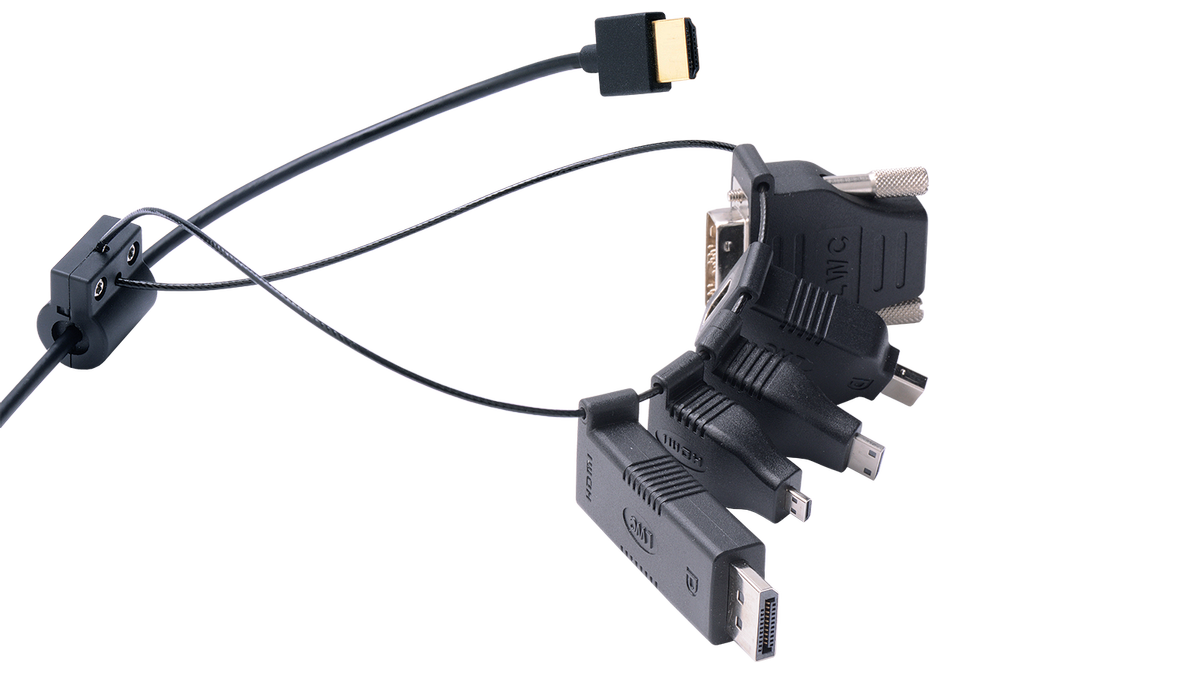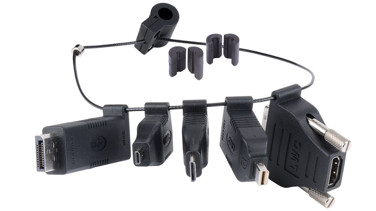 Liberty AV’s DigitaLinx DL-AR is an HDMI to multi-format adapter ring, it locks on to the end of your existing HDMI cable and provides 5 adapters conveniently located and easy to use. Your adapters can no longer be lost or stolen, the high strength steel cable securely attaches to your HDMI cable so your adapters are always ready to use. Just grab the adapter from the ring you need and plug into your HDMI cable, it is easy as that. There is no signal loss using any of the adapters, your picture quality will remain the same. Perfect for your presentations, the DL-AR has every video format covered and solves your issues of trying to find the right cable or adapter. The adapters are sleek and take up little space, they are also feature gold plated connectors for the most reliable connection possible. The security clamp attaches to any HDMI cable ranging from micro 4mm thick to large 11mm thick HDMI cables. Use a Torx T10 screw driver and 1.5mm hex wrench (not included) to attach the ring to your HDMI cable, if you need this please purchase part number T10PD.