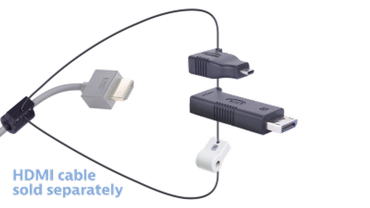 The Liberty AV Solutions DL-AR1193 adapter ring kit is a multiple format to HDMI adapter ring that locks on to the end of your existing HDMI cable and provides all your adapters on a conveniently located, easy to use, ring. Your adapters can no longer be lost or stolen, with the high strength steel cable, your adapters are securely attached to your HDMI cable, making them available for use when needed. To use, simply choose the adapter you need from the ring, attach it to your device and plug into your HDMI cable, it is that easy. There is no signal loss using any of the adapters, your picture quality will remain the same. Perfect for your presentations and adapting mobile content to an HDMI infrastructure, the DL-AR1193 gives you coverage for the exact video format you need and solves your issues of trying to find the right cable or adapter.