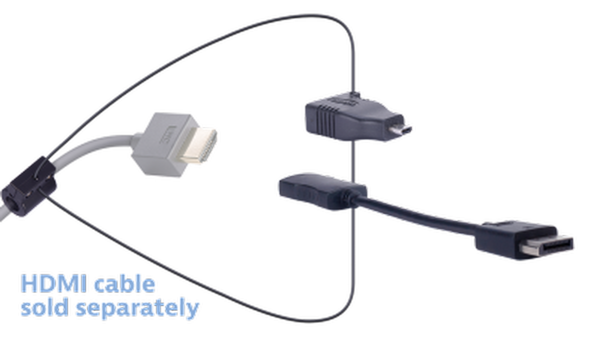 The Liberty AV Solutions DL-AR1667 adapter ring kit is a multiple format to HDMI adapter ring that locks on to the end of your existing HDMI cable and provides all your adapters on a conveniently located, easy to use, ring. Your adapters can no longer be lost or stolen, with the high strength steel cable, your adapters are securely attached to your HDMI cable, making them available for use when needed. To use, simply choose the adapter you need from the ring, attach it to your device and plug into your HDMI cable, it is that easy. There is no signal loss using any of the adapters, your picture quality will remain the same. Perfect for your presentations and adapting mobile content to an HDMI infrastructure, the DL-AR1667 gives you coverage for the exact video format you need and solves your issues of trying to find the right cable or adapter.