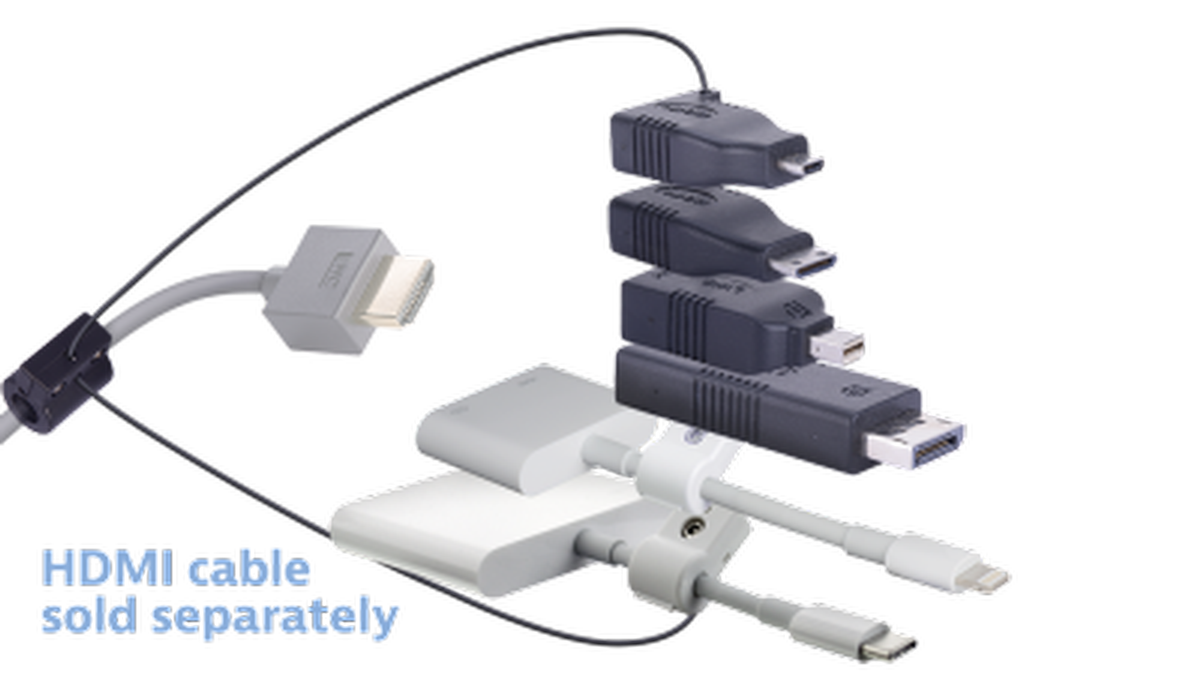 The Liberty AV Solutions DL-AR2772 adapter ring kit is a multiple format to HDMI adapter ring that locks on to the end of your existing HDMI cable and provides all your adapters on a conveniently located, easy to use, ring. Your adapters can no longer be lost or stolen, with the high strength steel cable, your adapters are securely attached to your HDMI cable, making them available for use when needed. To use, simply choose the adapter you need from the ring, attach it to your device and plug into your HDMI cable, it is that easy. There is no signal loss using any of the adapters, your picture quality will remain the same. Perfect for your presentations and adapting mobile content to an HDMI infrastructure, the DL-AR2772 gives you coverage for the exact video format you need and solves your issues of trying to find the right cable or adapter.