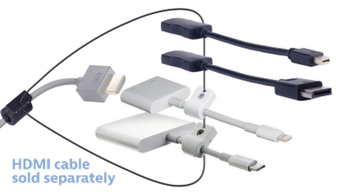 The Liberty AV Solutions DL-AR2799 adapter ring kit is a multiple format to HDMI adapter ring that locks on to the end of your existing HDMI cable and provides all your adapters on a conveniently located, easy to use, ring. Your adapters can no longer be lost or stolen, with the high strength steel cable, your adapters are securely attached to your HDMI cable, making them available for use when needed. To use, simply choose the adapter you need from the ring, attach it to your device and plug into your HDMI cable, it is that easy. There is no signal loss using any of the adapters, your picture quality will remain the same. Perfect for your presentations and adapting mobile content to an HDMI infrastructure, the DL-AR2799 gives you coverage for the exact video format you need and solves your issues of trying to find the right cable or adapter.
