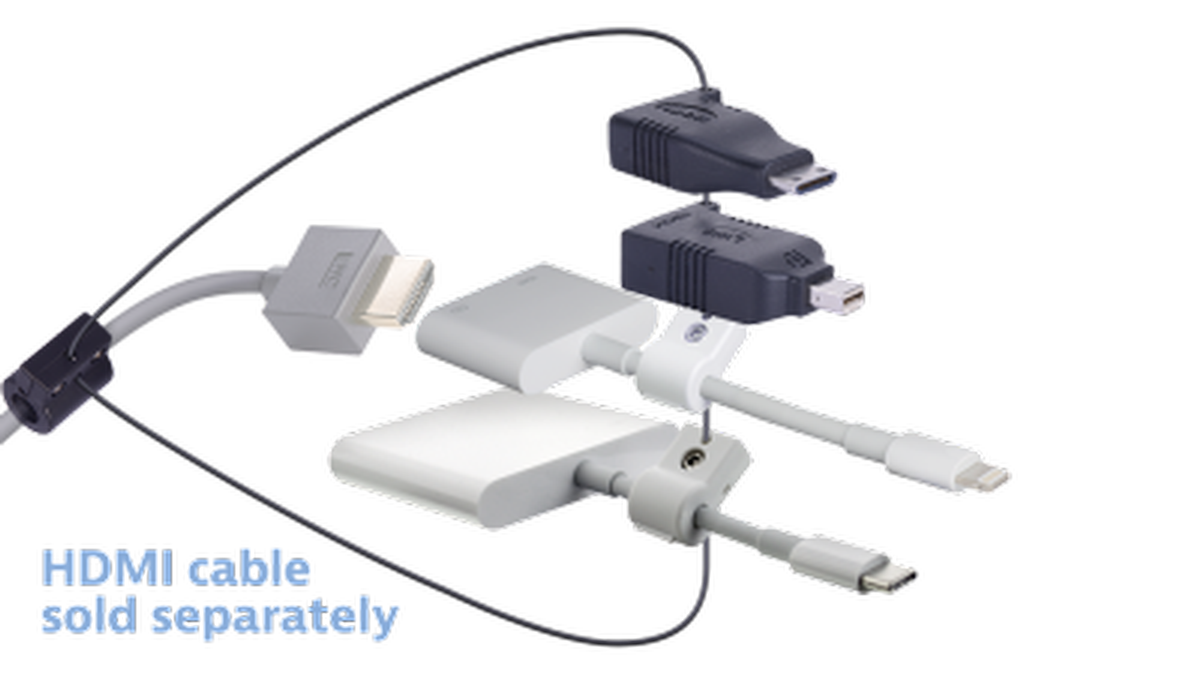 The Liberty AV Solutions DL-AR2846 adapter ring kit is a multiple format to HDMI adapter ring that locks on to the end of your existing HDMI cable and provides all your adapters on a conveniently located, easy to use, ring. Your adapters can no longer be lost or stolen, with the high strength steel cable, your adapters are securely attached to your HDMI cable, making them available for use when needed. To use, simply choose the adapter you need from the ring, attach it to your device and plug into your HDMI cable, it is that easy. There is no signal loss using any of the adapters, your picture quality will remain the same. Perfect for your presentations and adapting mobile content to an HDMI infrastructure, the DL-AR2846 gives you coverage for the exact video format you need and solves your issues of trying to find the right cable or adapter.