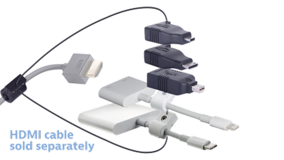 The Liberty AV Solutions DL-AR3087 adapter ring kit is a multiple format to HDMI adapter ring that locks on to the end of your existing HDMI cable and provides all your adapters on a conveniently located, easy to use, ring. Your adapters can no longer be lost or stolen, with the high strength steel cable, your adapters are securely attached to your HDMI cable, making them available for use when needed. To use, simply choose the adapter you need from the ring, attach it to your device and plug into your HDMI cable, it is that easy. There is no signal loss using any of the adapters, your picture quality will remain the same. Perfect for your presentations and adapting mobile content to an HDMI infrastructure, the DL-AR3087 gives you coverage for the exact video format you need and solves your issues of trying to find the right cable or adapter.