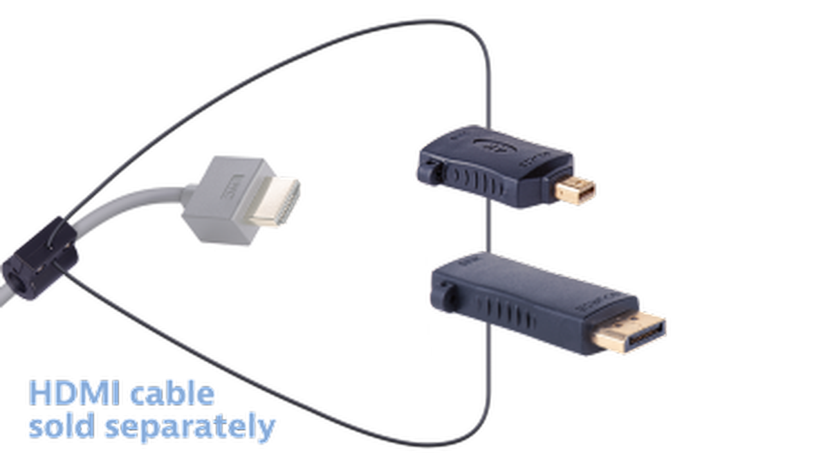 The Liberty AV Solutions DL-AR3956 adapter ring kit is a multiple format to HDMI adapter ring that locks on to the end of your existing HDMI cable and provides all your adapters on a conveniently located, easy to use, ring. Your adapters can no longer be lost or stolen, with the high strength steel cable, your adapters are securely attached to your HDMI cable, making them available for use when needed. To use, simply choose the adapter you need from the ring, attach it to your device and plug into your HDMI cable, it is that easy. There is no signal loss using any of the adapters, your picture quality will remain the same. Perfect for your presentations and adapting mobile content to an HDMI infrastructure, the DL-AR3956 gives you coverage for the exact video format you need and solves your issues of trying to find the right cable or adapter.
