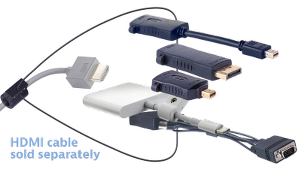 The Liberty AV Solutions DL-AR4049 adapter ring kit is a multiple format to HDMI adapter ring that locks on to the end of your existing HDMI cable and provides all your adapters on a conveniently located, easy to use, ring. Your adapters can no longer be lost or stolen, with the high strength steel cable, your adapters are securely attached to your HDMI cable, making them available for use when needed. To use, simply choose the adapter you need from the ring, attach it to your device and plug into your HDMI cable, it is that easy. There is no signal loss using any of the adapters, your picture quality will remain the same. Perfect for your presentations and adapting mobile content to an HDMI infrastructure, the DL-AR4049 gives you coverage for the exact video format you need and solves your issues of trying to find the right cable or adapter.