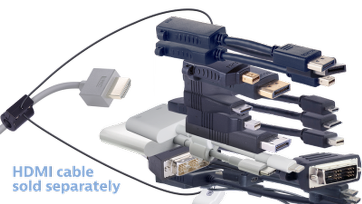 The Liberty AV Solutions DL-AR4067 adapter ring kit is a multiple format to HDMI adapter ring that locks on to the end of your existing HDMI cable and provides all your adapters on a conveniently located, easy to use, ring. Your adapters can no longer be lost or stolen, with the high strength steel cable, your adapters are securely attached to your HDMI cable, making them available for use when needed. To use, simply choose the adapter you need from the ring, attach it to your device and plug into your HDMI cable, it is that easy. There is no signal loss using any of the adapters, your picture quality will remain the same. Perfect for your presentations and adapting mobile content to an HDMI infrastructure, the DL-AR4067 gives you coverage for the exact video format you need and solves your issues of trying to find the right cable or adapter.