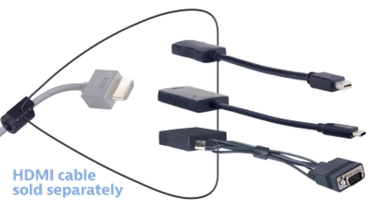 The Liberty AV Solutions DL-AR4078 adapter ring kit is a multiple format to HDMI adapter ring that locks on to the end of your existing HDMI cable and provides all your adapters on a conveniently located, easy to use, ring. Your adapters can no longer be lost or stolen, with the high strength steel cable, your adapters are securely attached to your HDMI cable, making them available for use when needed. To use, simply choose the adapter you need from the ring, attach it to your device and plug into your HDMI cable, it is that easy. There is no signal loss using any of the adapters, your picture quality will remain the same. Perfect for your presentations and adapting mobile content to an HDMI infrastructure, the DL-AR4078 gives you coverage for the exact video format you need and solves your issues of trying to find the right cable or adapter.