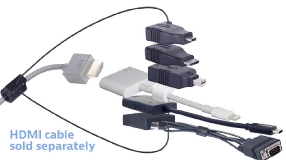 The Liberty AV Solutions DL-AR4130 adapter ring kit is a multiple format to HDMI adapter ring that locks on to the end of your existing HDMI cable and provides all your adapters on a conveniently located, easy to use, ring. Your adapters can no longer be lost or stolen, with the high strength steel cable, your adapters are securely attached to your HDMI cable, making them available for use when needed. To use, simply choose the adapter you need from the ring, attach it to your device and plug into your HDMI cable, it is that easy. There is no signal loss using any of the adapters, your picture quality will remain the same. Perfect for your presentations and adapting mobile content to an HDMI infrastructure, the DL-AR4130 gives you coverage for the exact video format you need and solves your issues of trying to find the right cable or adapter.