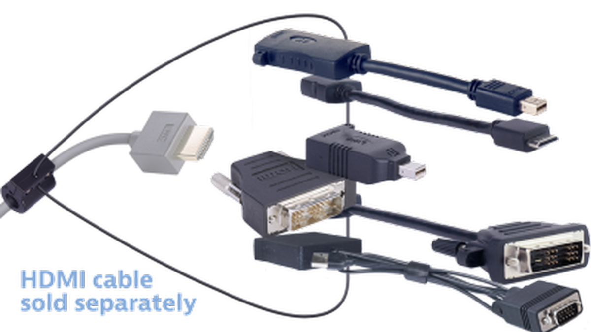 The Liberty AV Solutions DL-AR4567 adapter ring kit is a multiple format to HDMI adapter ring that locks on to the end of your existing HDMI cable and provides all your adapters on a conveniently located, easy to use, ring. Your adapters can no longer be lost or stolen, with the high strength steel cable, your adapters are securely attached to your HDMI cable, making them available for use when needed. To use, simply choose the adapter you need from the ring, attach it to your device and plug into your HDMI cable, it is that easy. There is no signal loss using any of the adapters, your picture quality will remain the same. Perfect for your presentations and adapting mobile content to an HDMI infrastructure, the DL-AR4567 gives you coverage for the exact video format you need and solves your issues of trying to find the right cable or adapter.