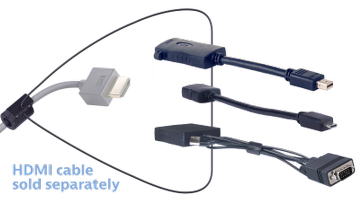 The Liberty AV Solutions DL-AR6083 adapter ring kit is a multiple format to HDMI adapter ring that locks on to the end of your existing HDMI cable and provides all your adapters on a conveniently located, easy to use, ring. Your adapters can no longer be lost or stolen, with the high strength steel cable, your adapters are securely attached to your HDMI cable, making them available for use when needed. To use, simply choose the adapter you need from the ring, attach it to your device and plug into your HDMI cable, it is that easy. There is no signal loss using any of the adapters, your picture quality will remain the same. Perfect for your presentations and adapting mobile content to an HDMI infrastructure, the DL-AR6083 gives you coverage for the exact video format you need and solves your issues of trying to find the right cable or adapter.