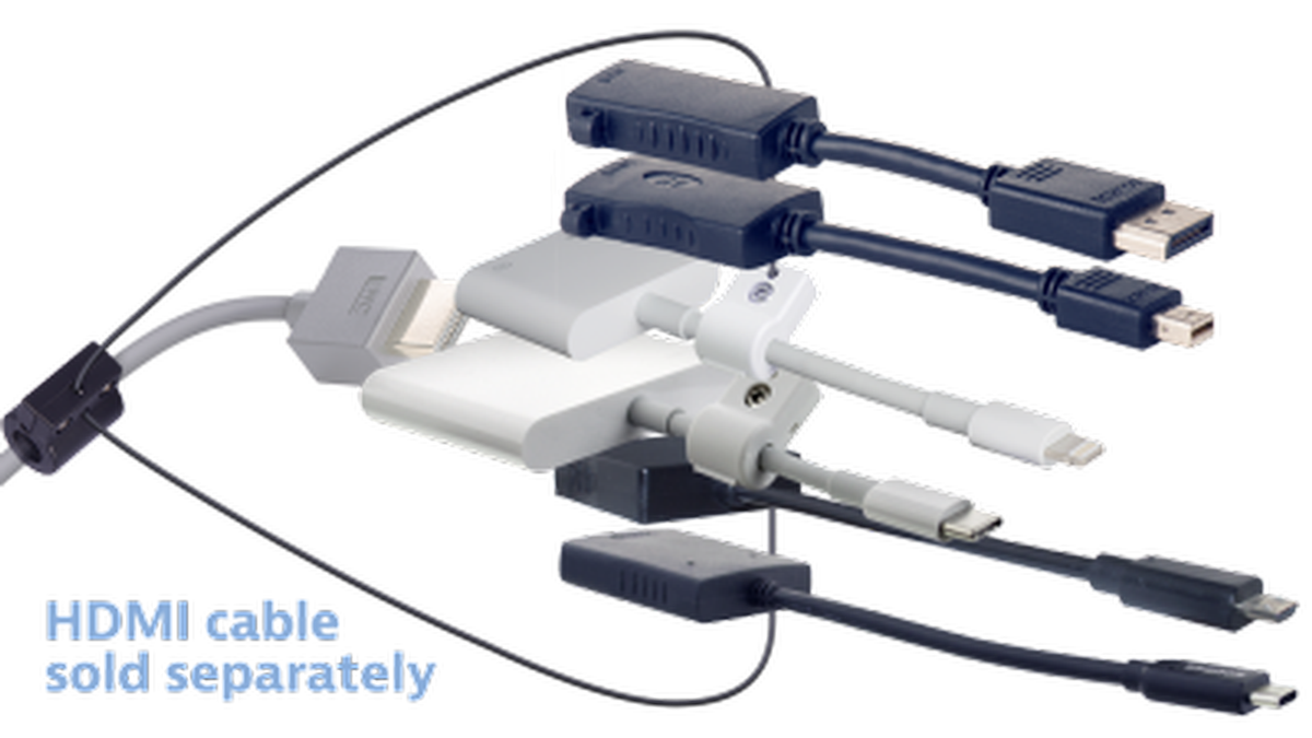 The Liberty AV Solutions DL-AR7267 adapter ring kit is a multiple format to HDMI adapter ring that locks on to the end of your existing HDMI cable and provides all your adapters on a conveniently located, easy to use, ring. Your adapters can no longer be lost or stolen, with the high strength steel cable, your adapters are securely attached to your HDMI cable, making them available for use when needed. To use, simply choose the adapter you need from the ring, attach it to your device and plug into your HDMI cable, it is that easy. There is no signal loss using any of the adapters, your picture quality will remain the same. Perfect for your presentations and adapting mobile content to an HDMI infrastructure, the DL-AR7267 gives you coverage for the exact video format you need and solves your issues of trying to find the right cable or adapter.