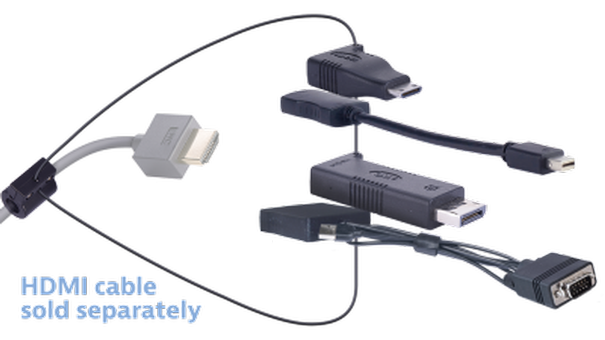 The Liberty AV Solutions DL-AR7297 adapter ring kit is a multiple format to HDMI adapter ring that locks on to the end of your existing HDMI cable and provides all your adapters on a conveniently located, easy to use, ring. Your adapters can no longer be lost or stolen, with the high strength steel cable, your adapters are securely attached to your HDMI cable, making them available for use when needed. To use, simply choose the adapter you need from the ring, attach it to your device and plug into your HDMI cable, it is that easy. There is no signal loss using any of the adapters, your picture quality will remain the same. Perfect for your presentations and adapting mobile content to an HDMI infrastructure, the DL-AR7297 gives you coverage for the exact video format you need and solves your issues of trying to find the right cable or adapter.