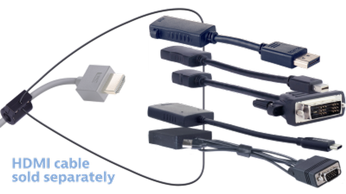 The Liberty AV Solutions DL-AR7573 adapter ring kit is a multiple format to HDMI adapter ring that locks on to the end of your existing HDMI cable and provides all your adapters on a conveniently located, easy to use, ring. Your adapters can no longer be lost or stolen, with the high strength steel cable, your adapters are securely attached to your HDMI cable, making them available for use when needed. To use, simply choose the adapter you need from the ring, attach it to your device and plug into your HDMI cable, it is that easy. There is no signal loss using any of the adapters, your picture quality will remain the same. Perfect for your presentations and adapting mobile content to an HDMI infrastructure, the DL-AR7573 gives you coverage for the exact video format you need and solves your issues of trying to find the right cable or adapter.