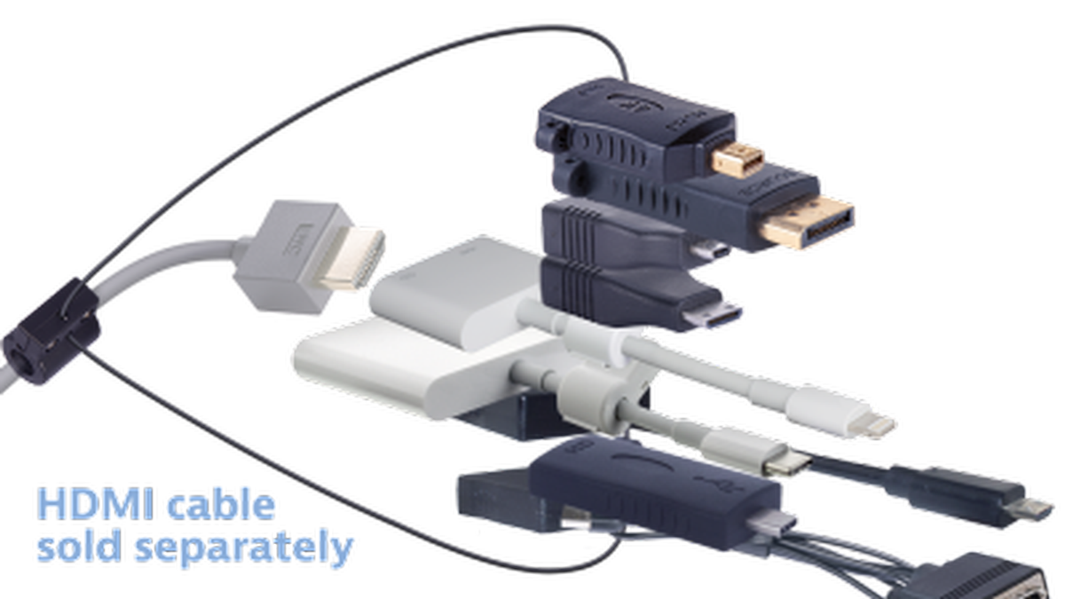 The Liberty AV Solutions DL-AR7922 adapter ring kit is a multiple format to HDMI adapter ring that locks on to the end of your existing HDMI cable and provides all your adapters on a conveniently located, easy to use, ring. Your adapters can no longer be lost or stolen, with the high strength steel cable, your adapters are securely attached to your HDMI cable, making them available for use when needed. To use, simply choose the adapter you need from the ring, attach it to your device and plug into your HDMI cable, it is that easy. There is no signal loss using any of the adapters, your picture quality will remain the same. Perfect for your presentations and adapting mobile content to an HDMI infrastructure, the DL-AR7922 gives you coverage for the exact video format you need and solves your issues of trying to find the right cable or adapter.