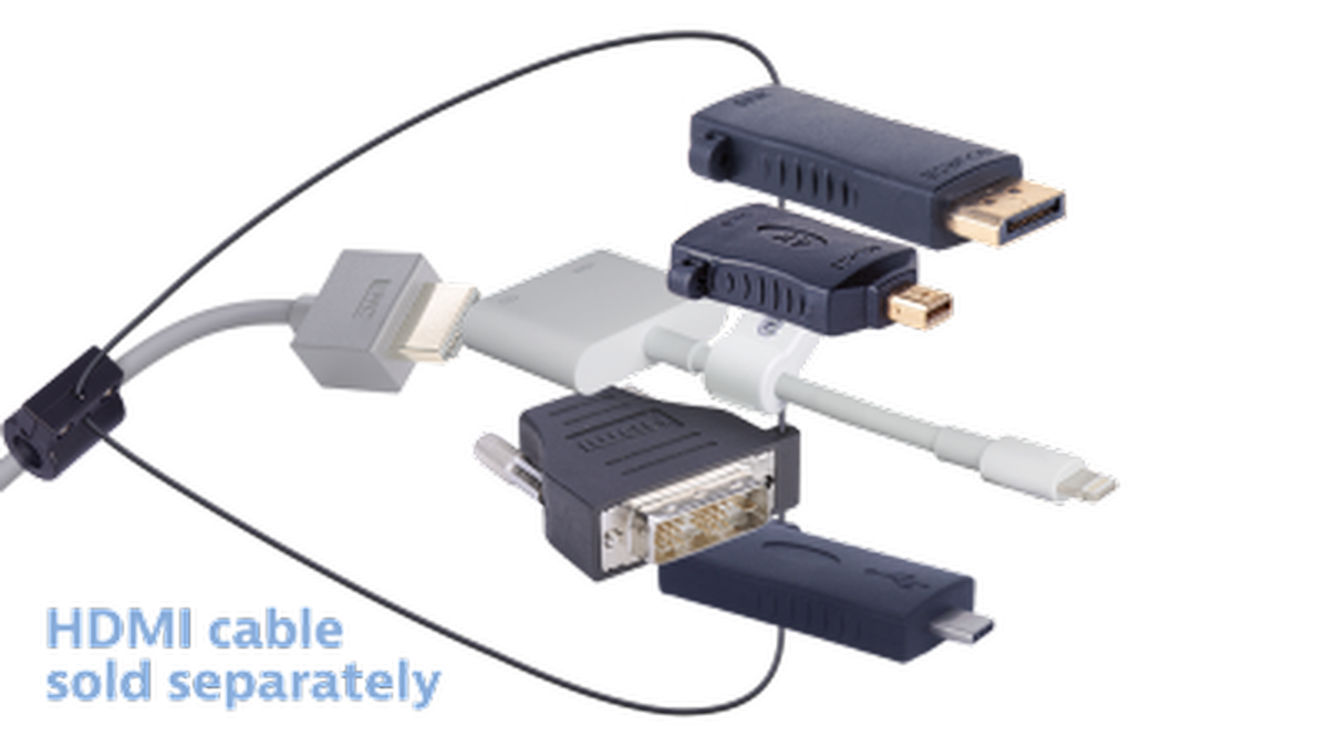 The Liberty AV Solutions DL-AR8180 adapter ring kit is a multiple format to HDMI adapter ring that locks on to the end of your existing HDMI cable and provides all your adapters on a conveniently located, easy to use, ring. Your adapters can no longer be lost or stolen, with the high strength steel cable, your adapters are securely attached to your HDMI cable, making them available for use when needed. To use, simply choose the adapter you need from the ring, attach it to your device and plug into your HDMI cable, it is that easy. There is no signal loss using any of the adapters, your picture quality will remain the same. Perfect for your presentations and adapting mobile content to an HDMI infrastructure, the DL-AR8180 gives you coverage for the exact video format you need and solves your issues of trying to find the right cable or adapter.