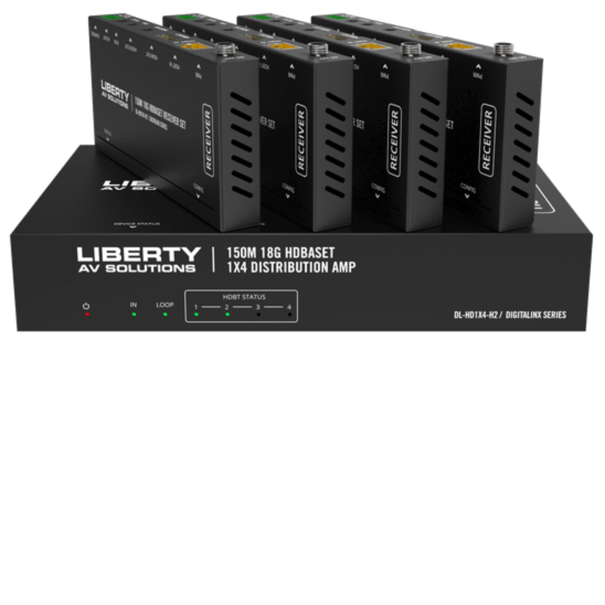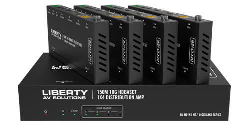 The Digitalinx Series is a family of extension, routing, and switching products designed to allow digital signals to extend beyond their limitations. Liberty’s latest addition, DL-HD1X4-H, is a complete kit that comes with one 4K HDMI to HDBaseT distribution amplifier plus four HDbaseT to HDMI receivers.