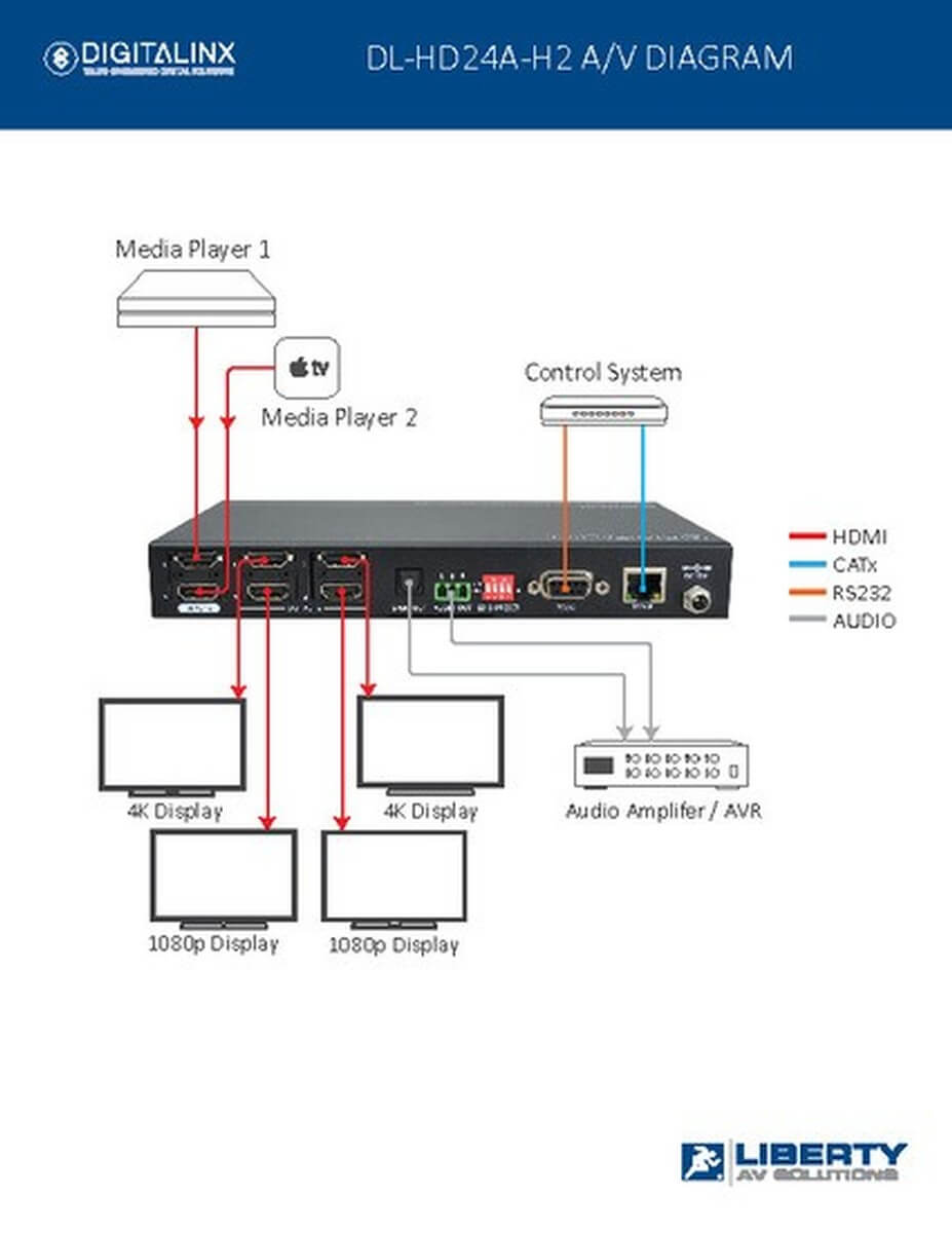 Home > Distribution Amplifiers -> HDMI -> 2X4 -> Liberty AV -> DL-HD24A-H2 2x4 HDMI Distribution Amp / Splitter