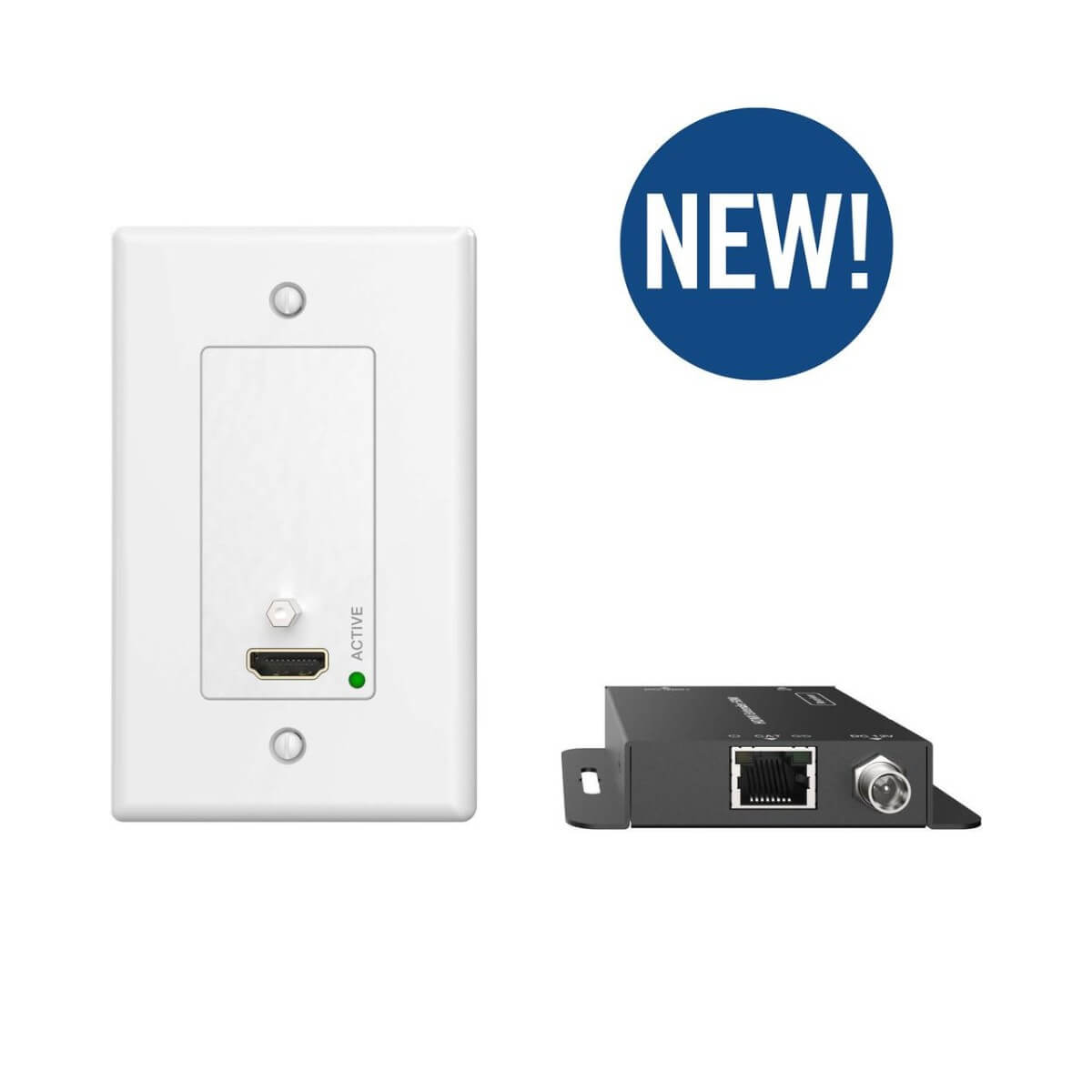 The Liberty AV DL-HD50C-WPKT-W is an HDMI wall plate extender kit with receiver. This wall plate and receiver combo has the ability to send HDMI signals up to 50m at 1080p resolutions over Cat5e.