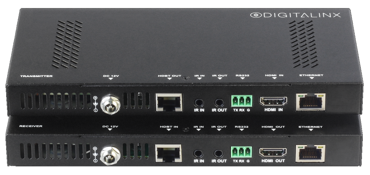 The DigitaLinx DL-HDE100-H2 HDBaseT extender set transmits HDMI 2.0 audio and video, up to 4K@60Hz 4:4:4/ 8 bit color with HDR support as well as control up to 100m / 330’ using a single Category 6 cable. Supports HDMI 2.0a, HDR10 and HDCP 2.2 as well as Dolby Atmos and DTS:X audio formats. Control extension supports bidirectional IR, Ethernet pass through and RS232 pass through. Built in re-clocking circuitry ensures that extender set is backwards compatible with older HDMI version chip sets.