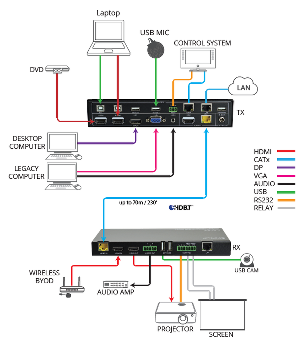 - Rx HDMI Input offers connectivity for remote devices such as wireless BYOD gateways