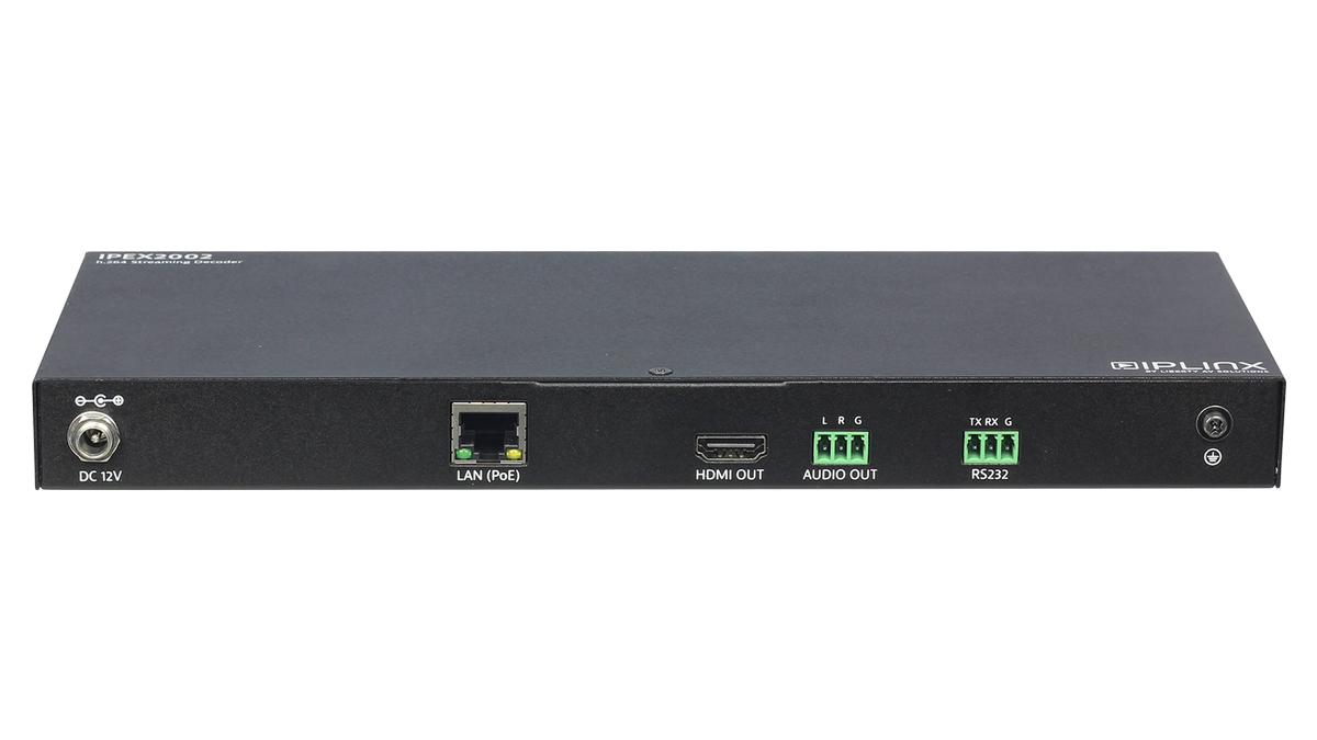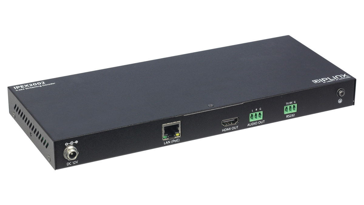 The IPEX2002 from Liberty AV is a HDMI over IP Decoder Scalable 1080p solution with full matrix and video wall capabilities. The IPEX2002 can receiver HDMI video and audio over a gigabit IP network using h.264 encoding with a data rate up to 30 Mbps from a compatible Encoder for example the IPEX2001. The IPEX2001 has the ability to support video signals up to 1920x1200 @ 60Hz and outputs video stream: one large IP stream at the native content resolution and a smaller video stream at 352x288 at 5 Hz to easily view a preview of the content on PC software or an iPad. In addition an analog audio output port de-embeds the audio from the HDMI content, while still streaming the audio with the video content. The IPEX2002 Decoder when used in conjunction with the compatible IPEX2001 Encoder supports POE and can be powered remotely by a compatible power source equipment, such as a PoE Ethernet switch, thus eliminating the need for a nearby power outlet, adding another layer of flexibility to this system. Encoding control provides adjustments for encoding bit rate and quality. There is an RS-232 port which operates in a pass-through capacity to control a third party device such as a projector.