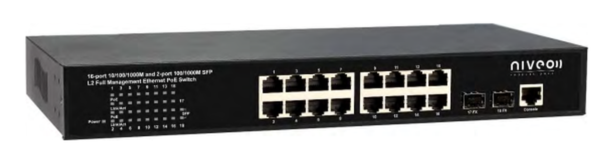 16-Port Full L2 Management, 2 SFP Open Slot, GB PoE Switch