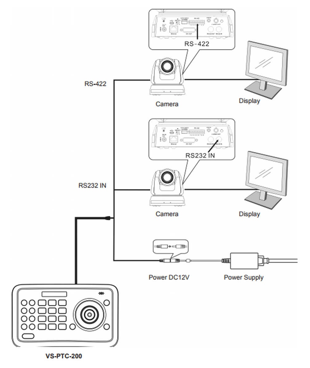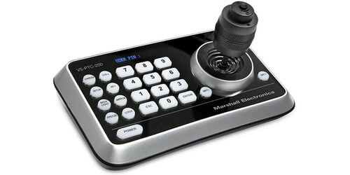 Introducing the VS-PTC-200 Compact PTZ Joystick Controller with 4D (Pan, Tilt, Zoom, Focus) from Marshall. This controller is designed and manufactured to easily integrate with the CV620 Series Broadcast PTZ Cameras from Marshall (not included). It operates zoom, focus, pan, and tilt simultaneously with the use of the joystick. Additionally, it allows the user to adjust preset/recall locations, brightness, freeze frame, backlight compensation, manual focus, flip and mirror as well as other adjustments by using the keypad buttons.