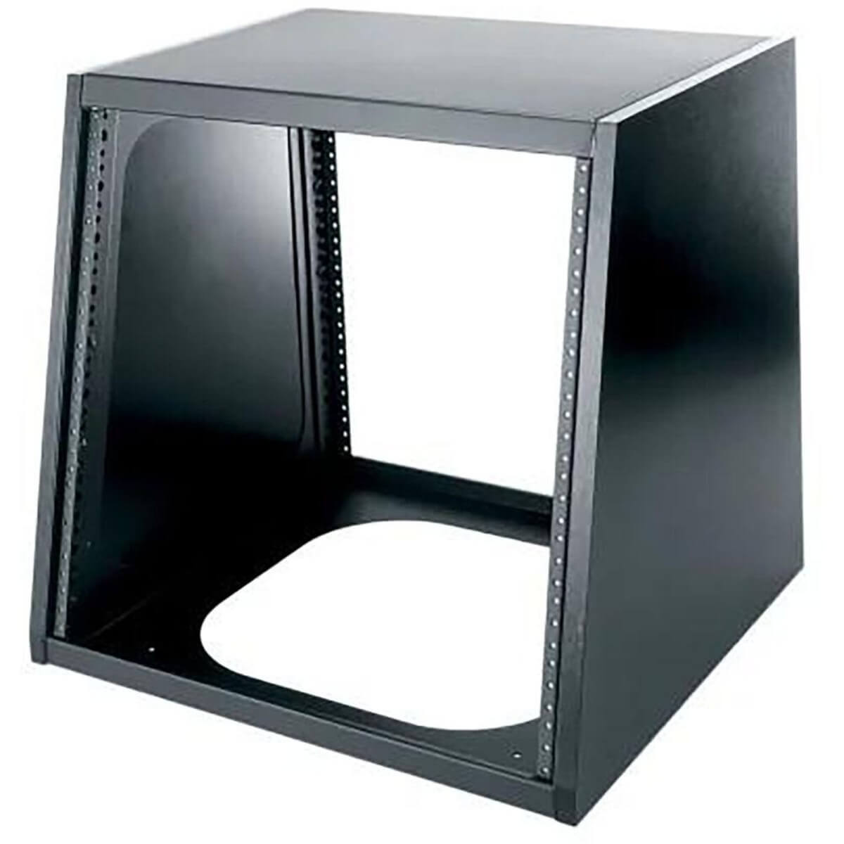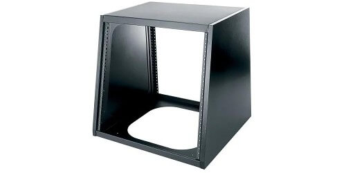 The 2-10 rack ships fully assembled and incorporates a sturdy black steel open frame and removable black laminate side panels. Featuring a sloping rack face for easy equipment viewing, this frame can be easily joined, with the open sides and bottom allowing for quick wire passage. Front and rear heavy-gauge, 10-32 threaded rackrail is standard.