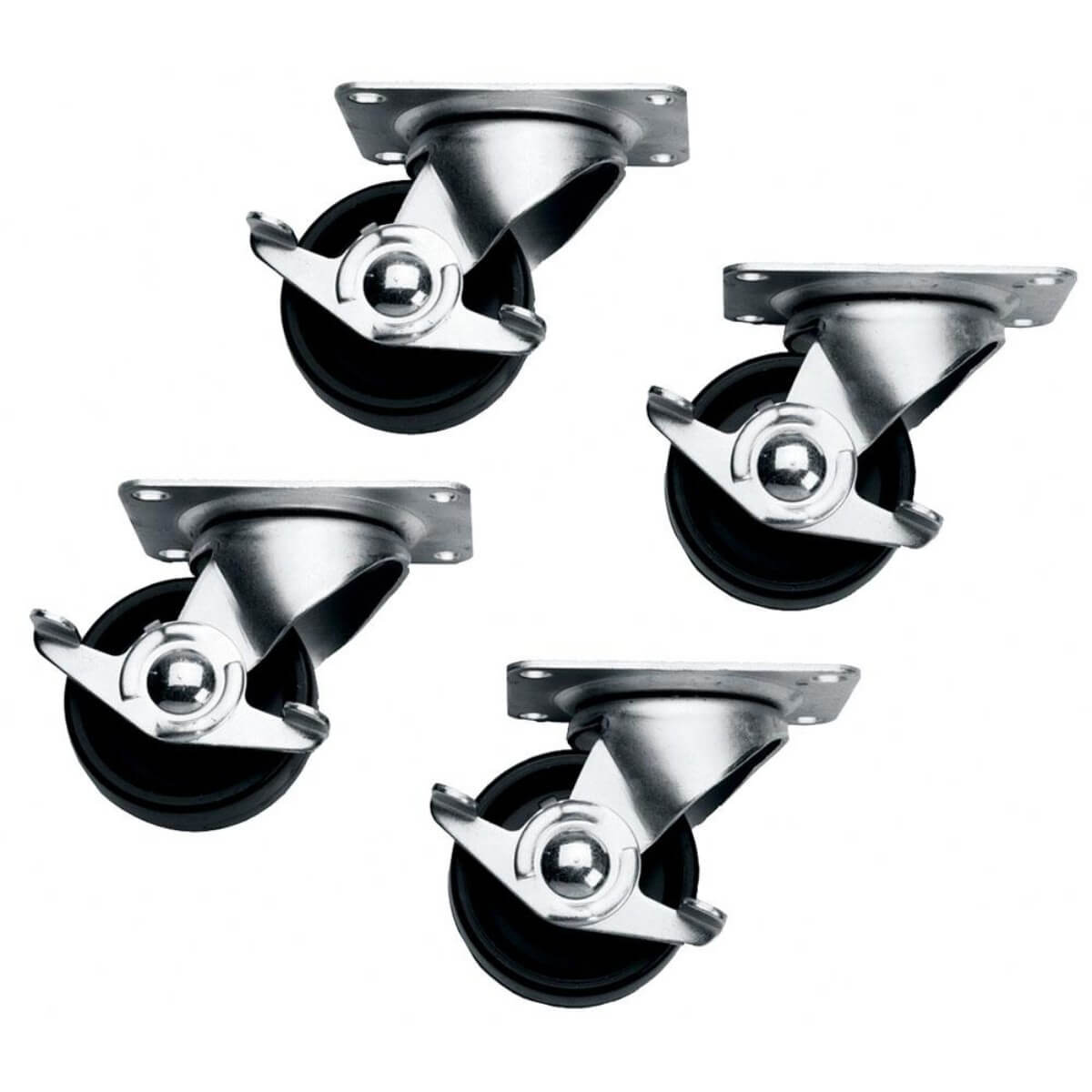 Heavy duty casters bolt directly to the bottom of Slim 5 racks or can be concealed in a skirted base. Casters are available in commercial grade and a fine floor version with a soft rubber wheel constructed of Dynatread TPR to protect against damaging decorative flooring. Available in locking and non-locking. Casters add 3-7/8-inch to overall cabinet height.