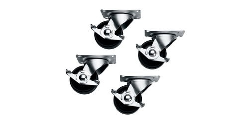 Heavy duty casters bolt directly to the bottom of Slim 5 racks or can be concealed in a skirted base. Casters are available in commercial grade and a fine floor version with a soft rubber wheel constructed of Dynatread TPR to protect against damaging decorative flooring. Available in locking and non-locking. Casters add 3-7/8-inch to overall cabinet height.