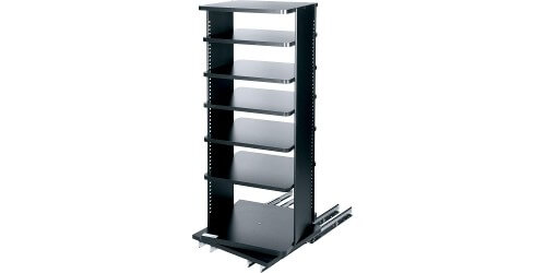 Specify an ASR for installing non-rackmount audio and video equipment in less visible locations in custom cabinetry and behind closed doors. Ideal for smaller systems or when an open shelf system is desired and the ability to customize shelf fronts is not required. Slide out and rotating functionality provides enhanced access to rear equipment connections.