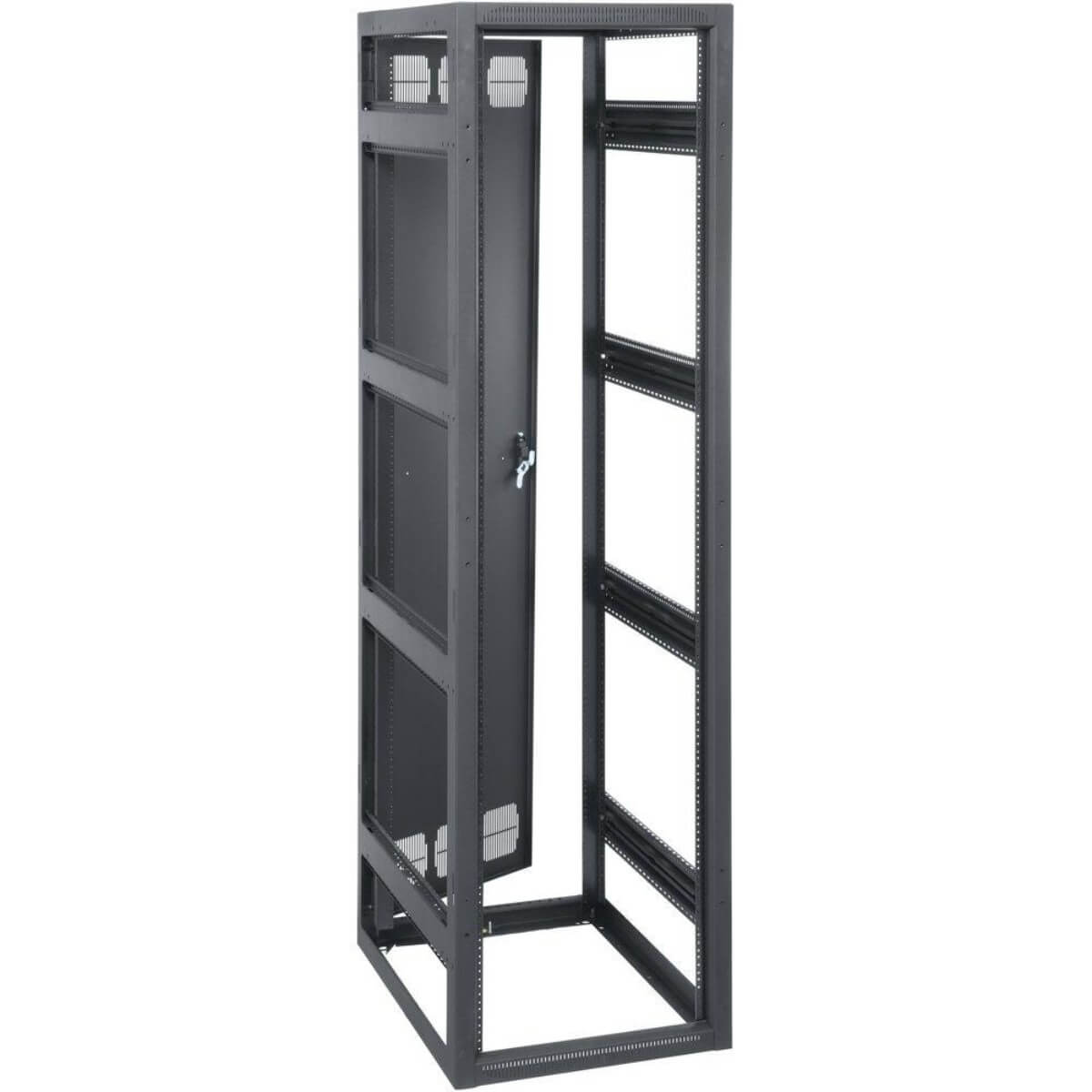 This is the -inchNext Generation-inch Rack you have been wanting! BGR series racks have higher weight capacities, provide more useable rackspace, and incorporate more functionality than any other rack system on the market. Features the revolutionary patent-pending LeverLock system for tool free installation of cable management accessories. New options include brush grommet rear doors and problem-solving extender bays. Choose a BGR enclosure for the highest level of space efficiency and strength available, and to enable the use of the latest options for installation flexibility. Structural Features. Breakthrough design provides more useable rack height - for example, the 45 space version overall height is shorter than 44 space alternative models. Accepts patent-pending LeverLock system accessories for fast, flexible cable management and mounting of small devices such as interface boxes, power supplies