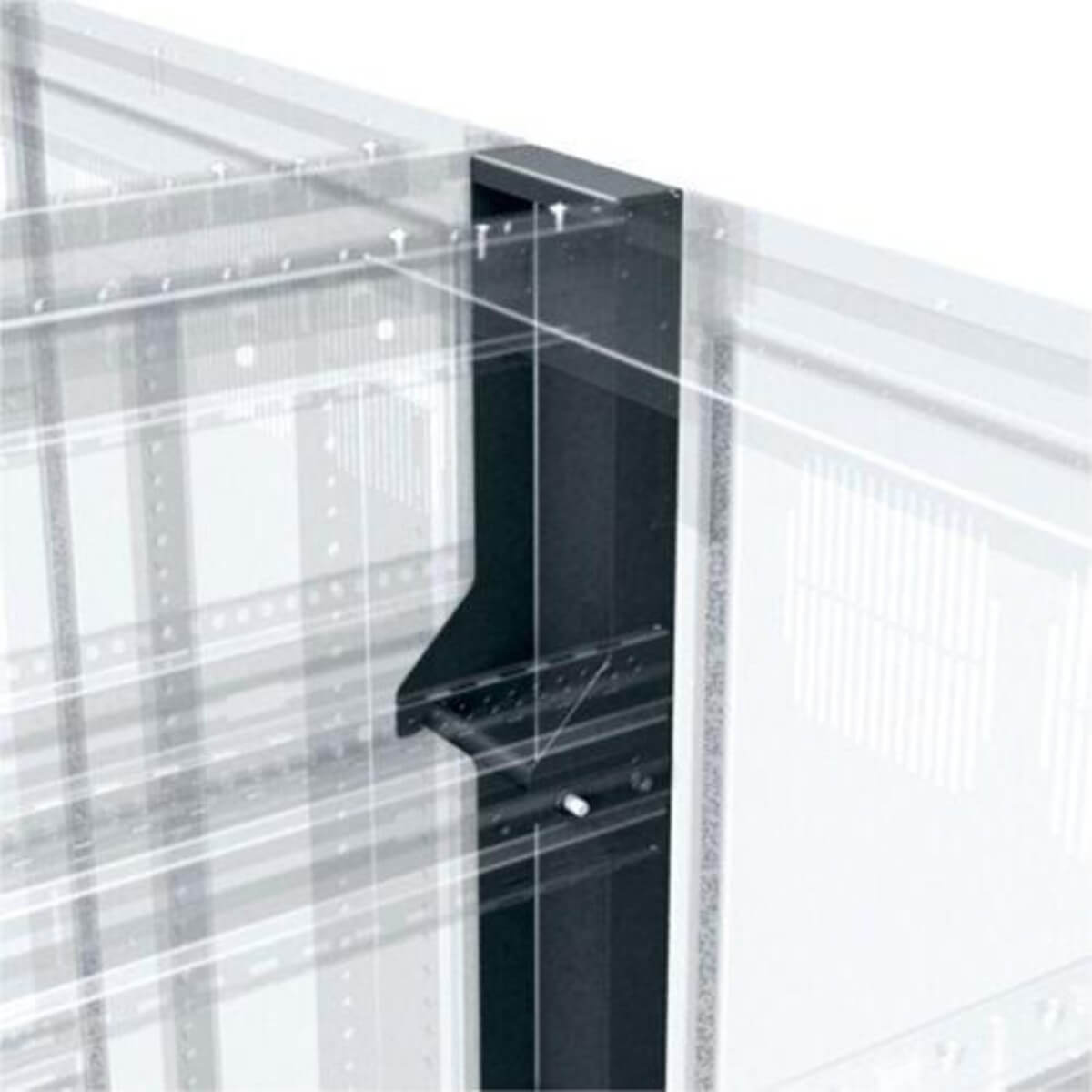 4.4" cable chase, front and back, for routing cables between racks Cable chase front and back only, with 4.4" width. Sturdy steel construction.
