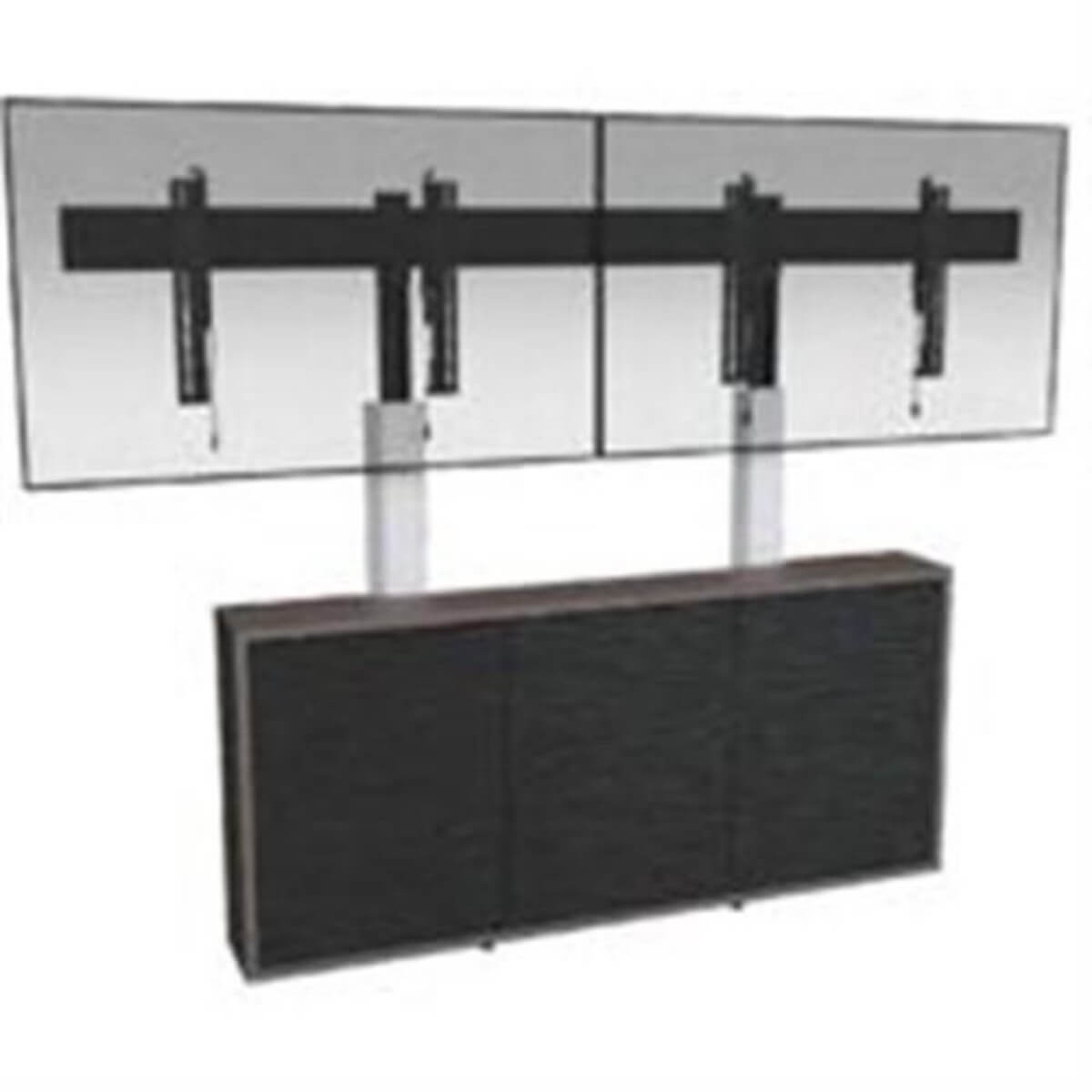 The 2 Bay C3 credenza HPL woodkit pairs a 5th Ave Elm (Wilsonart 7966K-12) cabinet with a Gloss White (Formica 949-90) doors.