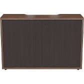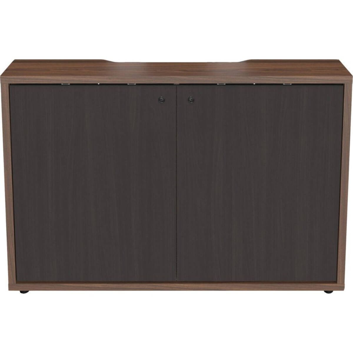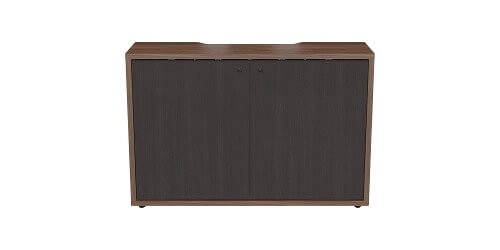 This 2 Bay C3 credenza HPL woodkit pairs a Montana Walnut (Wilsonart 7110K-78) cabinet with Blackened Legno (Formica 8848-58) doors. It fits the C3-FF32-2 frame.