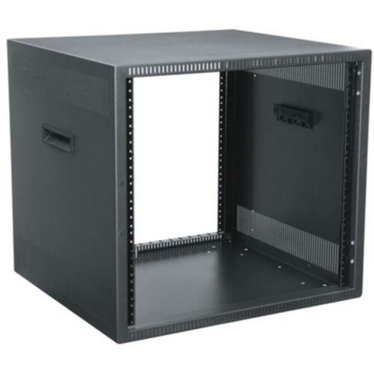 The compact DTRK Series provides a rackmounting solution for desktop installations and is also great for under-desk applications. Available options include vented and plexi front doors, and a brush grommet rear access panel for simple and clean cable entry routing. Ships fully assembled, with sturdy welded steel construction. Optional brackets provide compatibility with select Lever Lock accessories. Standard fixed front and rear 10-32 threaded rackrail.