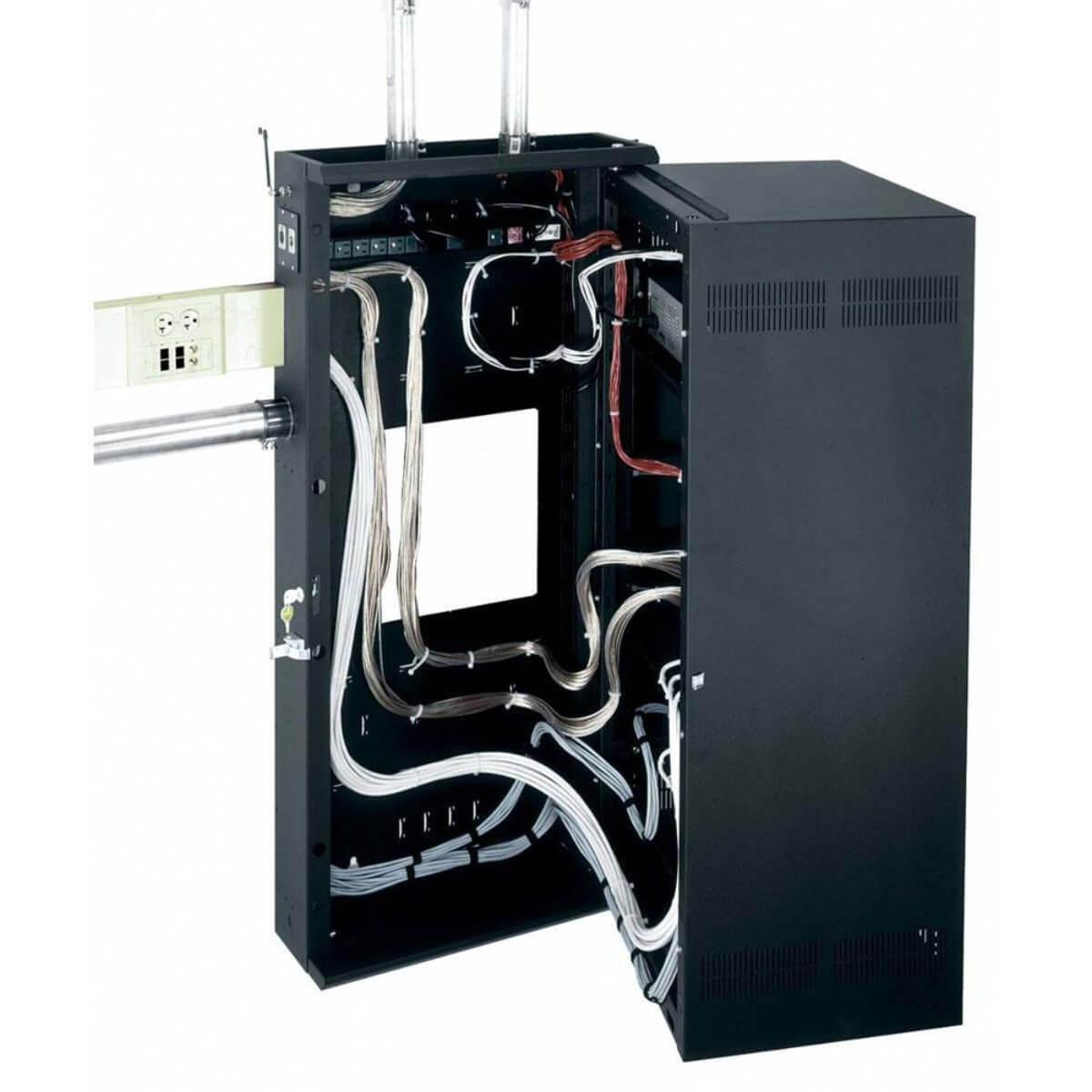 The DWR Series Wall Racks are now Forward and Lever Lock compatible providing maximum mounting capacity on and off the rail and a suite of tool-free accessories making rack installations 5Xs faster! Choose the DWR, the most versatile wall rack available, to provide easy rear access to equipment while keeping floor areas clear and minimizing the footprint of your system. This pivoting, sectional wall cabinet is ideal for systems in both secured and non-secured areas. Now equipped with the revolutionary Forward rackrail giving you the ability to use Forward blank panels, vent panels and horizontal cable management. Rear rackrail is optional (FWD-DWR-RRxx) Now accepts patented Lever Lock tool free and hardware free internal device and cable management system accessories in the center section (16, 18, 21, 24 & 35RU models) and the backpan (with LL-DWR/SR-BP) on all sizes