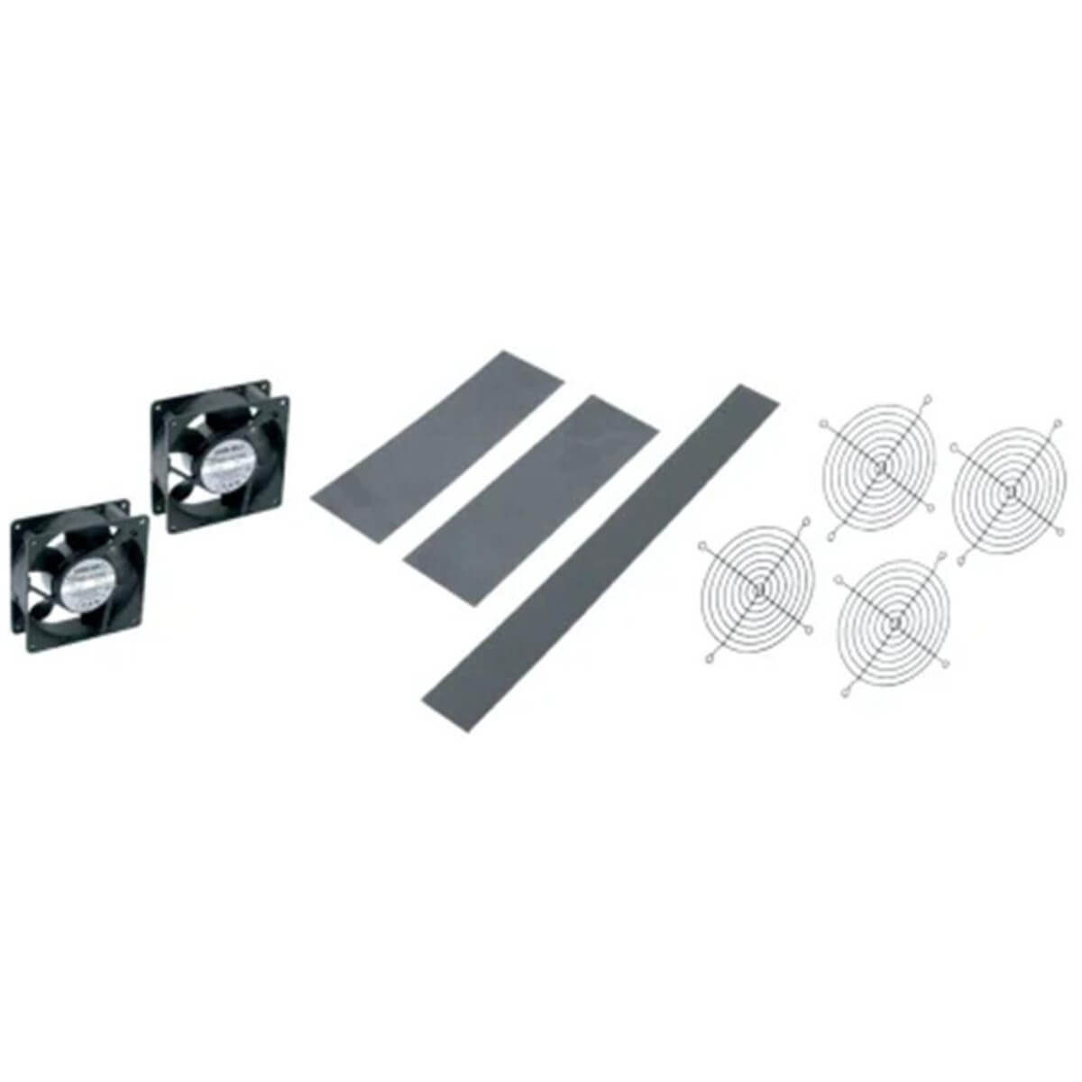 - (2) 4.5" fans with vent blockers, (4) fan guards, mounting hardware and power cord
