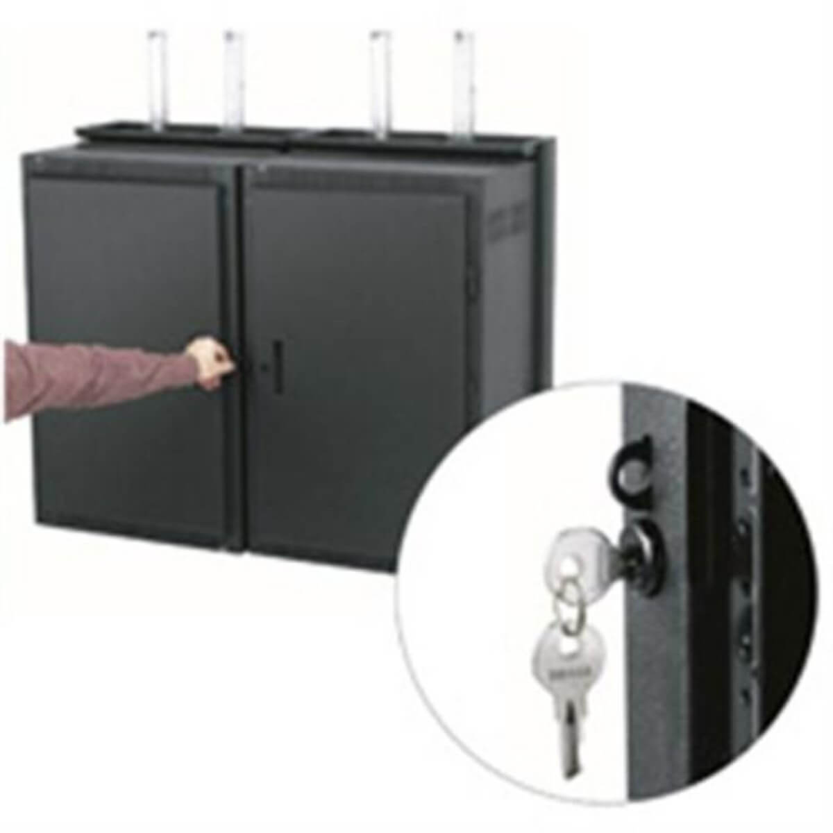 Front mounted latch saves valuable wall space by allowing wall racks to be placed side-by-side, in a corner, or wherever side clearance is an issue. To open, simply pull the convenient front-mounted handle. Unlike time-consuming threaded rods, this unique latch provides keylocked security from the front (keyed differently from optional front door). Easy to install; required for seismic installations.