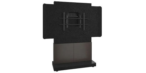 The Forum 2 Bay (48" Wide) Free-Standing Display Stand is designed for workspaces when hybrid collaboration is necessary in either open or closed spaces. This is how Hybrid works. A Free-Standing Display Stand with an included Chief Fusion Fixed display mount for a single 65" to 75" displays wrapped in acoustic felt for crystal clear meetings. The Free-Standing Display Stand and display shroud are wrapped in Charcoal Gray acoustic fabric to limit audio reverberation for the highest quality audio experience for local and remote participants.