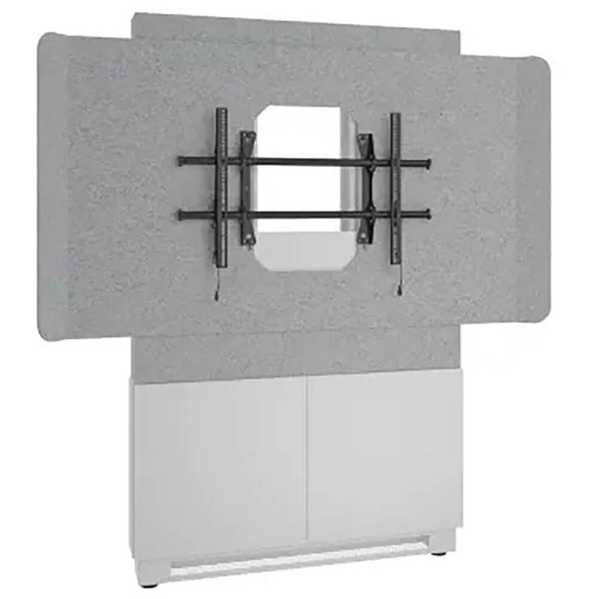 - The Floor-to-Wall Display Stand and display shroud are wrapped in Silver Gray acoustic fabric to limit audio reverberation for the highest quality audio experience for local and remote participants.