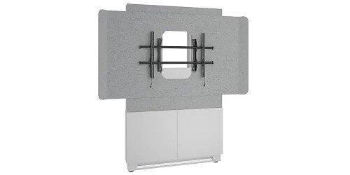 The Forum 2 Bay (48" Wide) Floor-to-Wall Display Stand is designed for workspaces when hybrid collaboration is necessary in either open or closed spaces and can be secured to a wall. This is how Hybrid works. A Floor-to-Wall Display Stand with an included Chief Fusion Fixed display mount for a single 55" to 65" displays wrapped in acoustic felt for crystal clear meetings.